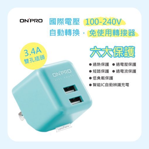 1️⃣ ONPRO UC-2P01 3.4A第二代超急速漾彩充電器