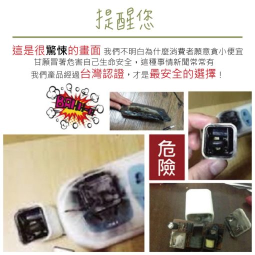 有別於他牌的充電頭,提供6種貼心保護裝置: